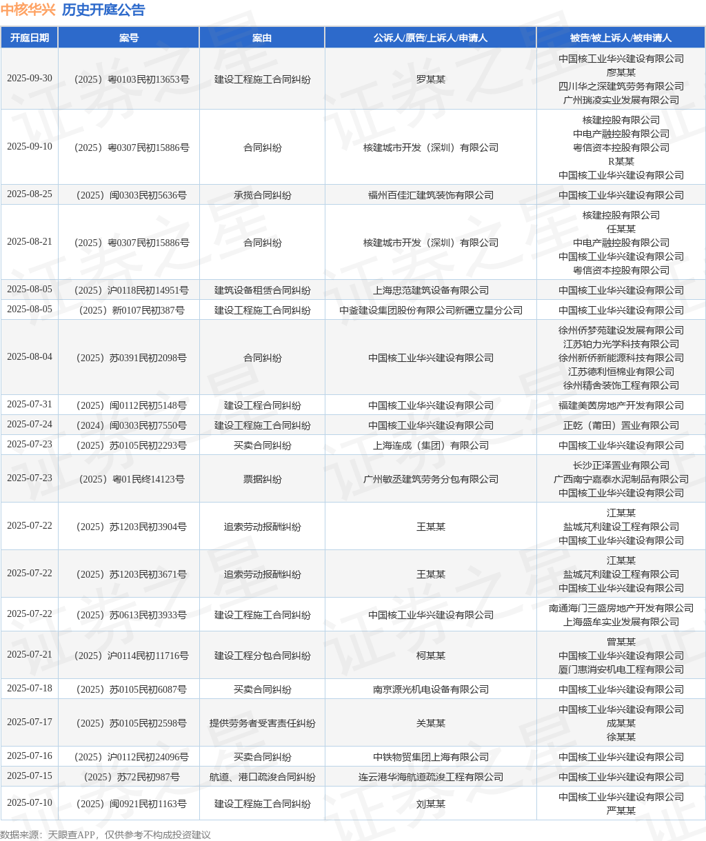 本站消息股票杠杆多少钱,根据天眼查APP显示,近日公布了一则中国核工业华兴建设有限公司作为被告/被上诉人的开庭公告,详细内容如下: